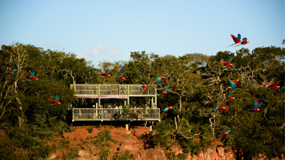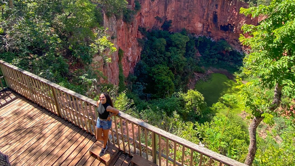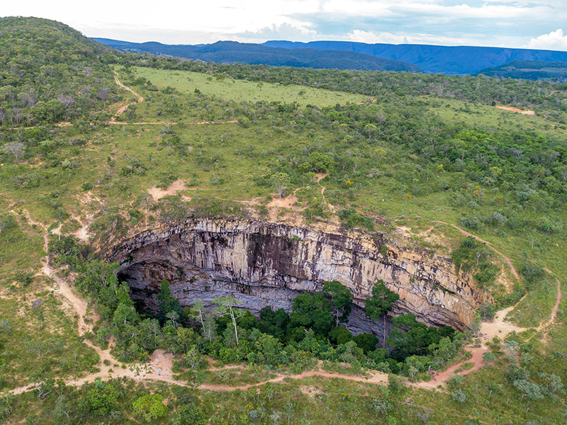 The region’s limestone rock formations have given rise to canyons, underground caverns and caves, some of which have imploded. The best known is Buraco das Araras, a 124m deep and 500m wide sinkhole created by a collapsed cave near Rio da Prata. Many red-and-blue macaws (and other bird species) have sought refuge here, loudly chattering in trees as they watch over their nests wedged in amongst the cliffs below. The observant eye may even spot caimans in the muddy waters at the base of the sinkhole!