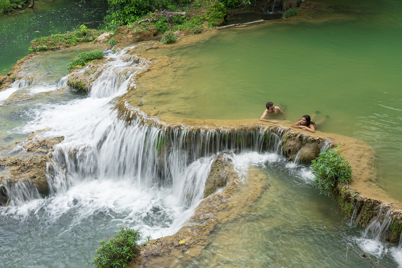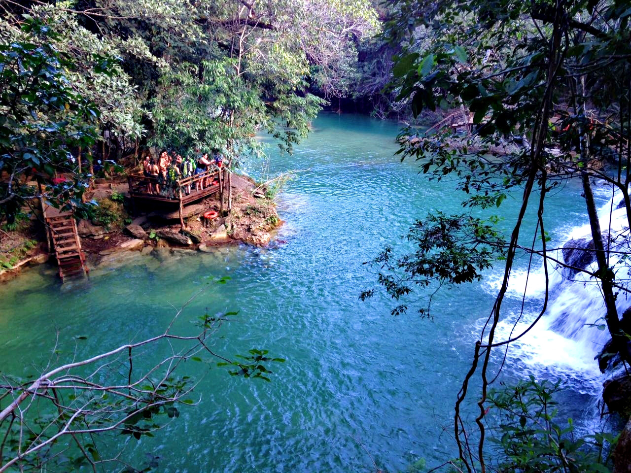 Estância Mimosa offers a guided trail of 2.8km through the forest, past small caves and 9 cascading waterfalls. Swimming is allowed along the way in the natural pools under and around the waterfalls, and there are 2 jumping platforms. Before or after your tour, a regional lunch buffet (mostly made with ingredients from their own fazenda) and hammocks await. Closed shoes are mandatory. Special rubber boots are available at additional cost.