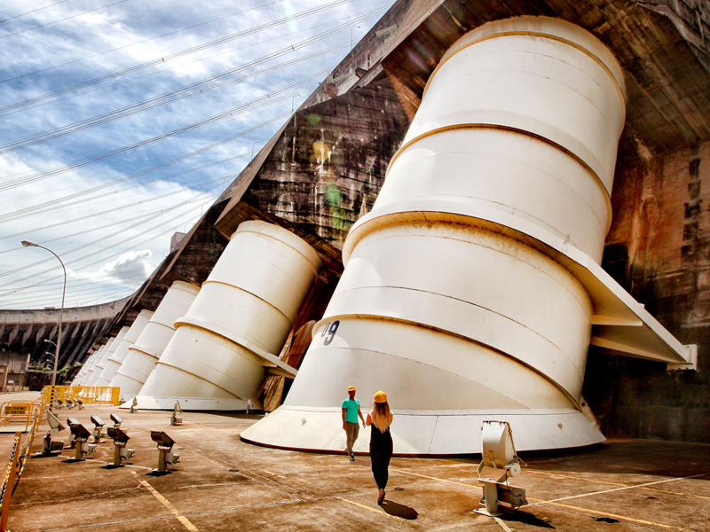 Serving 10 Brazilian states, including the Federal District of Brasília, and Paraguay, the plant generates more than 26% of the electrical power generated in Brazil, and 20.6% of that produced in the MERCOSUL countries (Brazil, Argentina, Uruguay, Paraguay, Chile and Bolivia). In addition to becoming a tourist attraction in its own right, the dam led to the construction of the town of Foz do Iguaçu, which flourishes due to tourism and trade with neighbouring countries. Starting at the reception centre, a video presentation shows the different stages of construction and explains how this extraordinary feat of engineering operates, after which you visit the main observatory to see the impressive spectacle and a panorama of the plant.