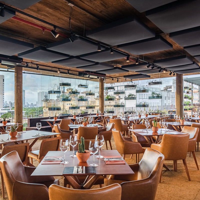 Cais do Sertão Rooftop is a stylish restaurant located on the top floor of the Cais do Sertão Museum in Recife Antigo. With panoramic views over the harbour and historic centre, it offers a relaxed and scenic dining experience. The menu highlights Northeastern Brazilian cuisine with contemporary touches, featuring seafood, grilled meats and regional specialities.
